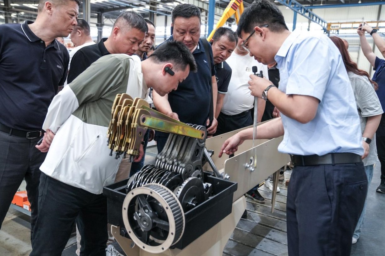 隨后,商會(huì)來(lái)賓一同前往海佳(黃山)智能工廠,共同參觀海佳年產(chǎn)1.5萬(wàn)臺(tái)噴水織機(jī)與年產(chǎn)2萬(wàn)臺(tái)凸輪開(kāi)口智能生產(chǎn)線。在總經(jīng)理劉井然的詳細(xì)講解下,商會(huì)一行深入生產(chǎn)一線,了解海佳產(chǎn)品管控及質(zhì)量標(biāo)準(zhǔn),對(duì)海佳精準(zhǔn)管理和高效產(chǎn)能給予成分肯定。