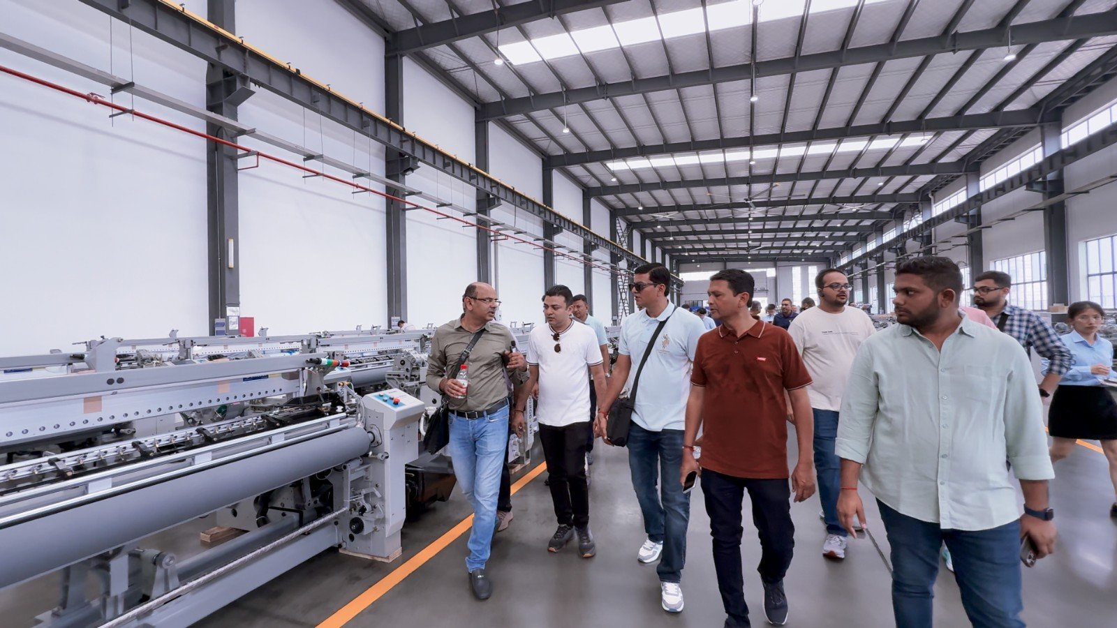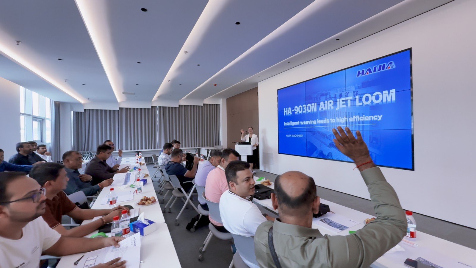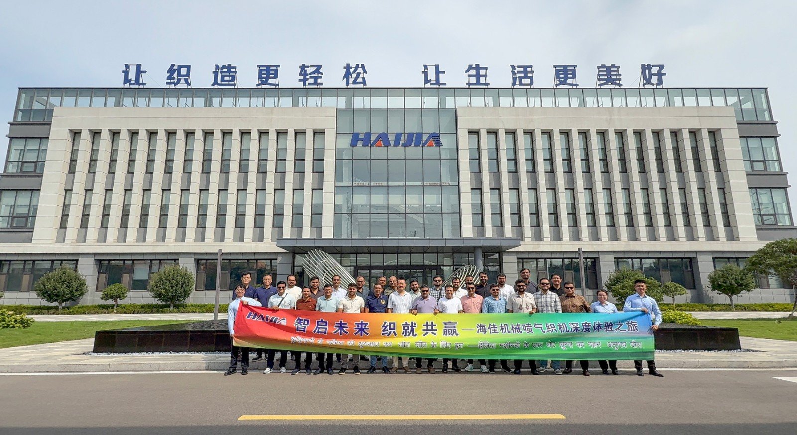 2025年8月28日,24家印度紡織企業(yè)客戶代表走進(jìn)海佳集團(tuán),開啟了一場(chǎng)深度的噴氣織機(jī)體驗(yàn)之旅。