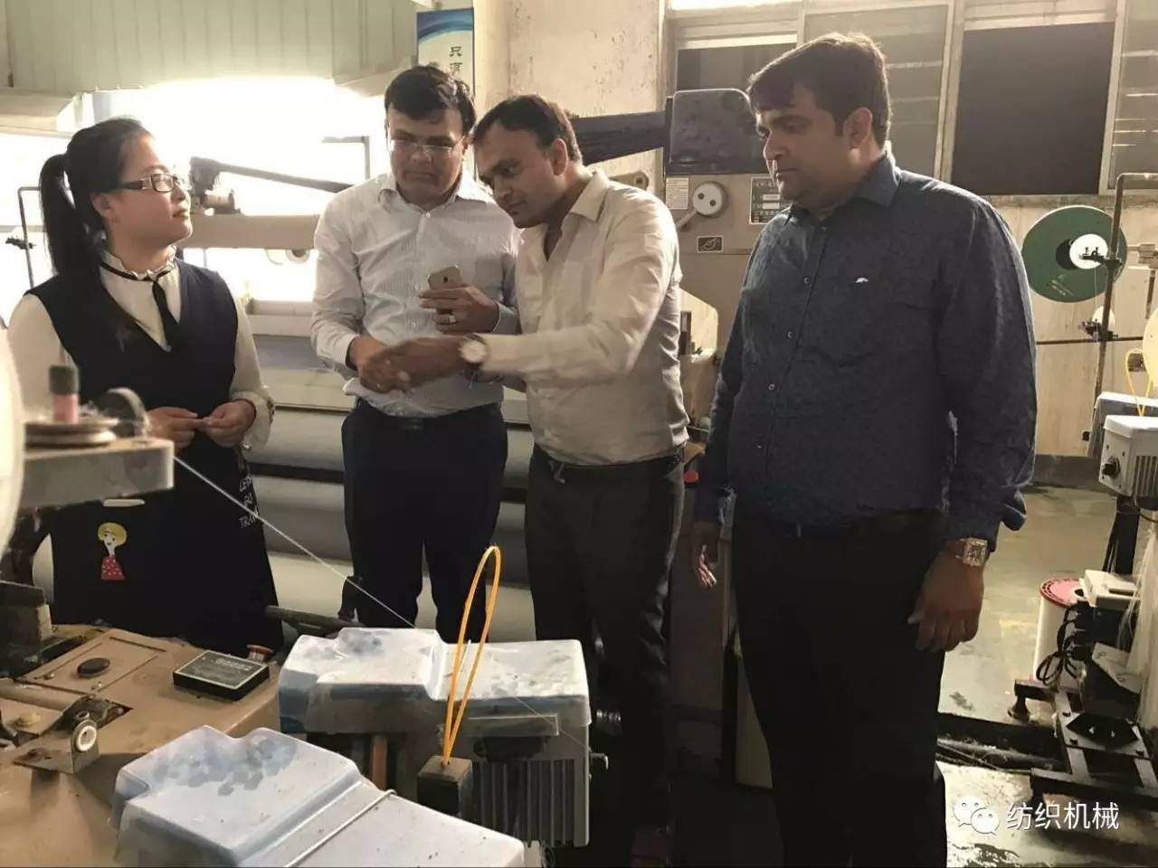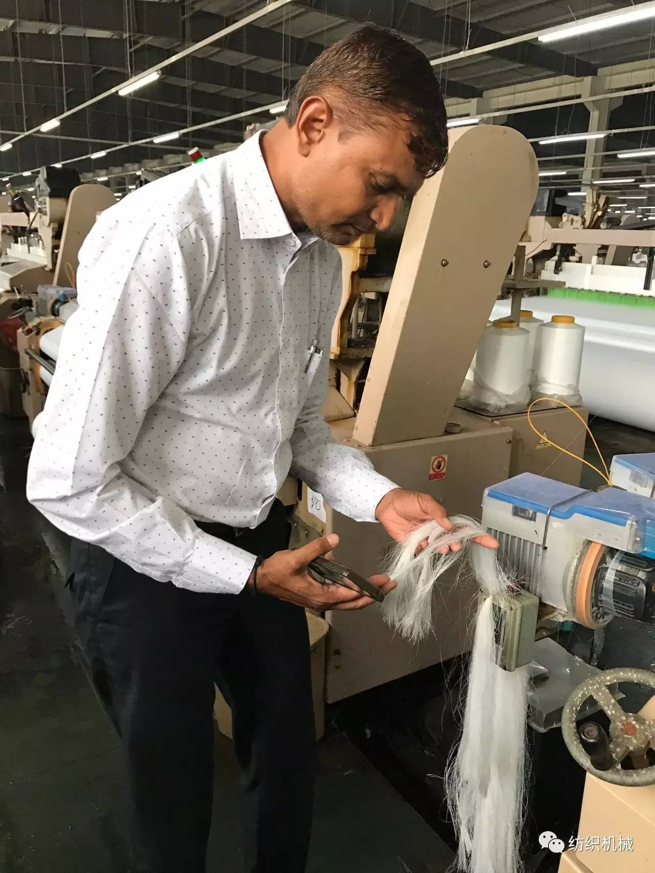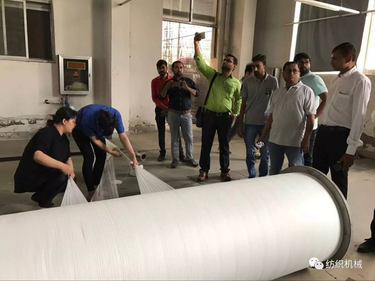 一進聚潤車間,印度代表們就被上千臺織機同時運行的車間震撼到了。紛紛拿出手機拍照,錄制視頻。
