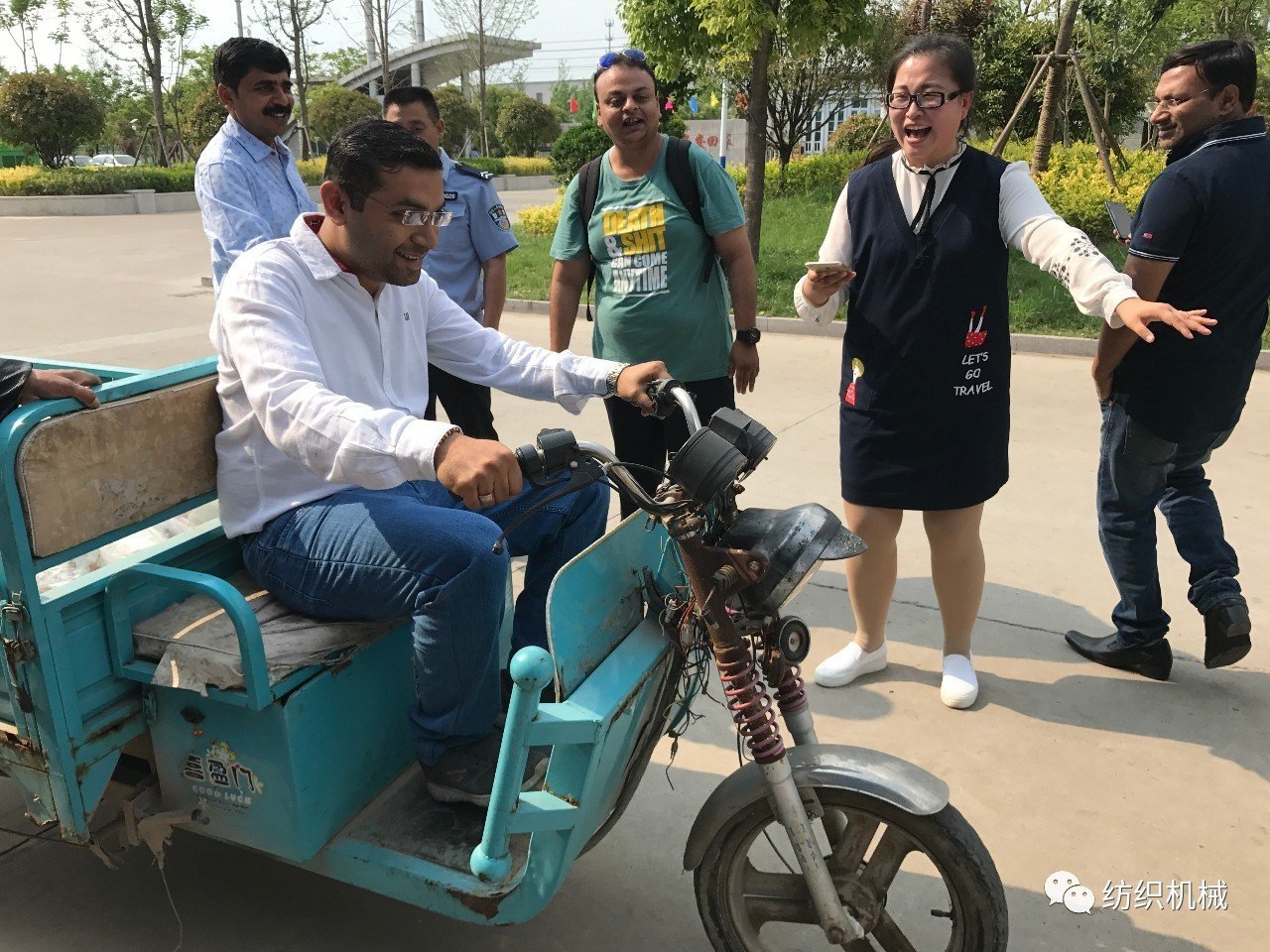 印度朋友們似乎對中國的一切都充滿了好奇,文末彩蛋給大家分享一下他們在聚潤車間外嘗試電動三輪車的圖片,也是有趣地很!