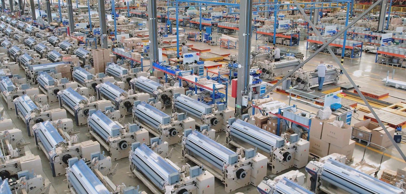結(jié)合科技、時(shí)尚、綠色理念,設(shè)計(jì)建成年產(chǎn)20000臺高端無梭織機(jī)的數(shù)字化智能工廠。擁有全球首個(gè)紡機(jī)行業(yè)脈動(dòng)式裝配生產(chǎn)線,10余條日本牧野、馬扎克全自動(dòng)柔性加工線,自動(dòng)電泳噴涂生產(chǎn)線等自動(dòng)化設(shè)備。開發(fā)并應(yīng)用高端無梭織機(jī)智造全流程信息化管理系統(tǒng),實(shí)現(xiàn)自動(dòng)化和信息化深度融合,引領(lǐng)高端織機(jī)數(shù)字化和標(biāo)準(zhǔn)化生產(chǎn),成為無梭織機(jī)行業(yè)智能制造典范。