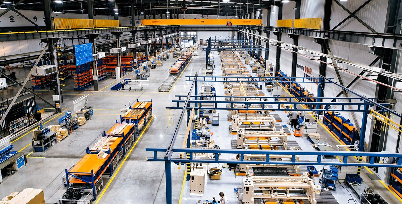 青島世紀(jì)海佳機(jī)械有限公司成立于2018年,位于青島市西海岸新區(qū)膠州灣西路1219號,公司注冊資金10000萬元,占地面積為6萬平方米,致力于高端無梭織機(jī)的研發(fā)和制造,目前專注生產(chǎn)高端無梭織機(jī),年產(chǎn)能12000臺。該工廠擁有全球首個(gè)紡機(jī)行業(yè)脈動(dòng)式裝配生產(chǎn)線,10余條日本牧野、馬扎克全自動(dòng)柔性加工線,自動(dòng)電泳噴涂生產(chǎn)線等自動(dòng)化設(shè)備。開發(fā)并應(yīng)用高端無梭織機(jī)智造全流程信息化管理系統(tǒng),實(shí)現(xiàn)自動(dòng)化和信息化深度融合,引領(lǐng)高端織機(jī)數(shù)字化和標(biāo)準(zhǔn)化生產(chǎn),是無梭織機(jī)行業(yè)智能制造典范。
